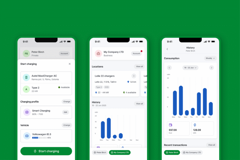 Новое приложение. Новый опыт зарядки. Добро пожаловать в Enefit Charge — наше приложение для зарядки дома и на работе